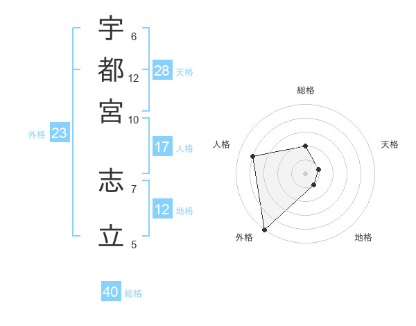 宇都宮 志立さんを姓名の画数から五運を鑑定