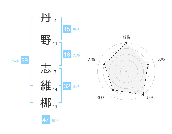 丹野 志維梛さんの総格は47画の5点!
