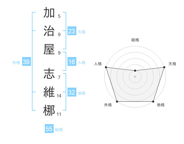 加治屋 志維梛さんの天格は23画の5点!