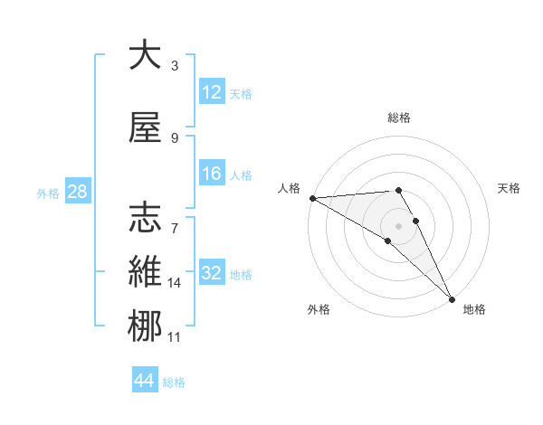 大屋 志維梛さんを姓名の画数から五運を鑑定