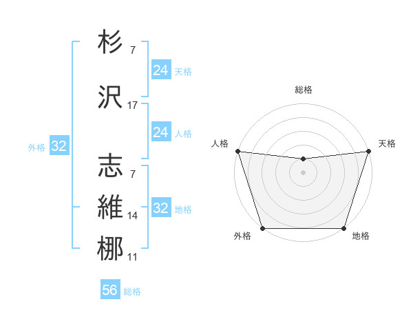 杉沢 志維梛さんを姓名の画数から五運を鑑定