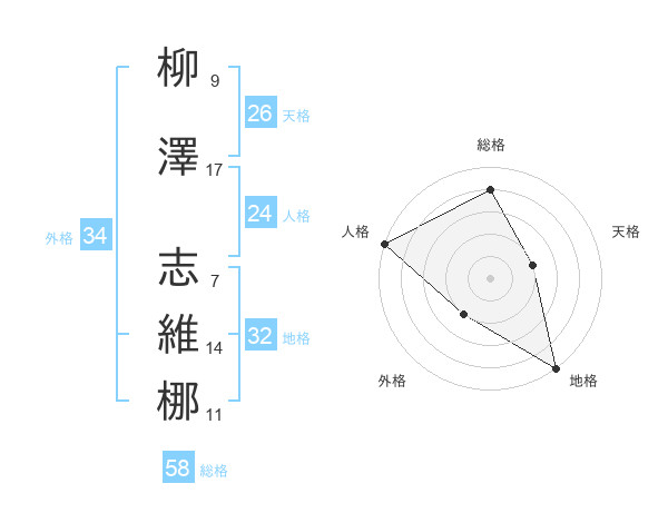 柳澤 志維梛さんを姓名の画数から五運を鑑定