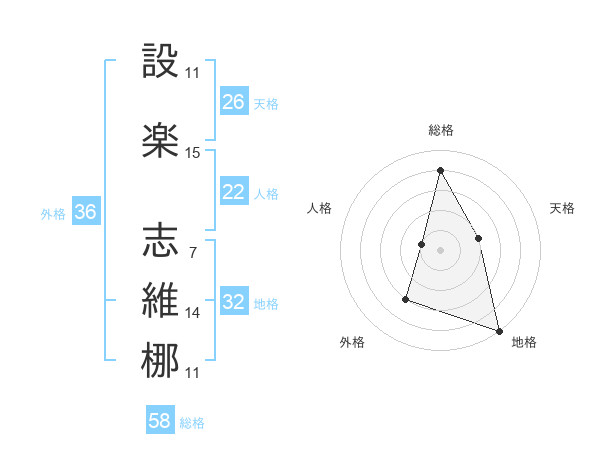 設楽 志維梛さんを姓名の画数から五運を鑑定