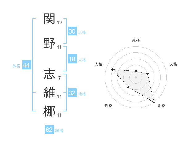 関野 志維梛さんを姓名の画数から五運を鑑定