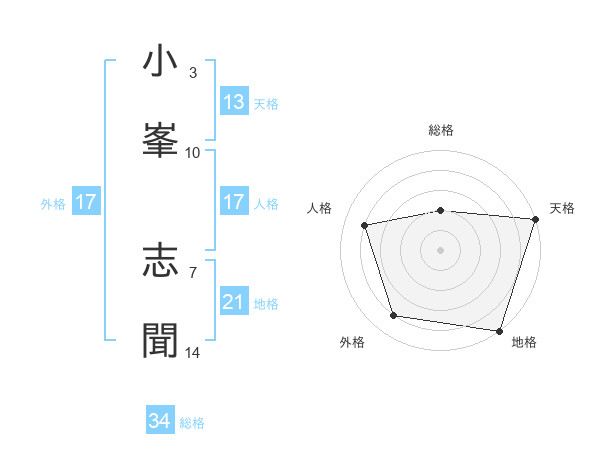 小峯 志聞さんを姓名の画数から五運を鑑定