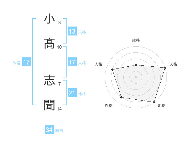 小髙 志聞さんの天格は13画の5点!