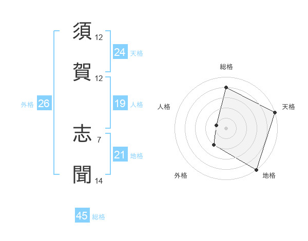 須賀 志聞さんを姓名の画数から五運を鑑定