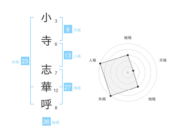 小寺 志華呼さんを姓名の画数から五運を鑑定
