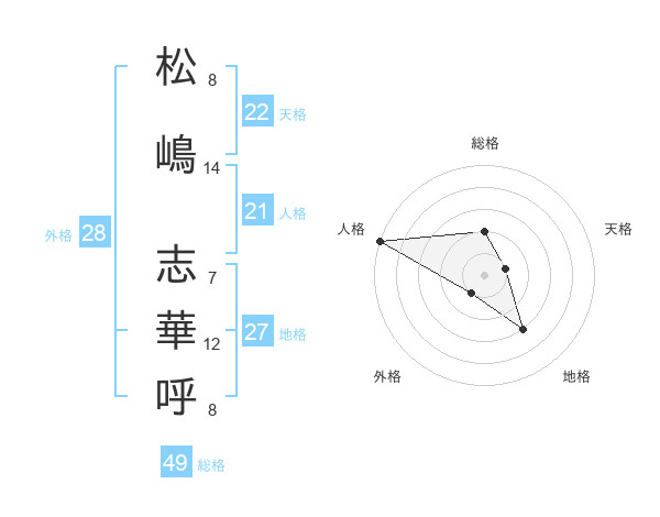 松嶋 志華呼さんを姓名の画数から五運を鑑定