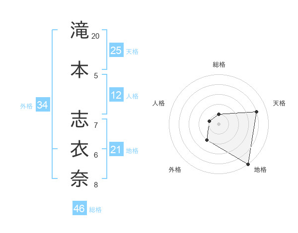滝本 志衣奈さんを姓名の画数から五運を鑑定