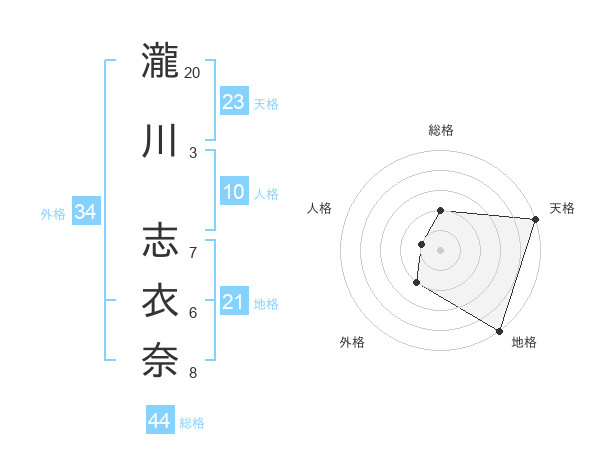 瀧川 志衣奈さんの天格は23画の5点!