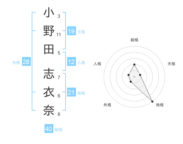 小野田 志衣奈さんを姓名の画数から五運を鑑定