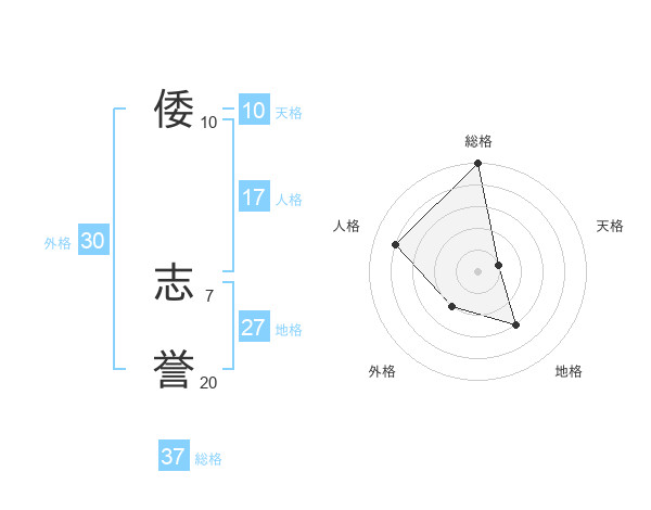 倭 志誉さんの総格は37画の5点!