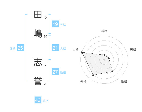 田嶋 志誉さんを姓名の画数から五運を鑑定