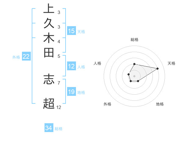 上久木田 志超さんを姓名の画数から五運を鑑定