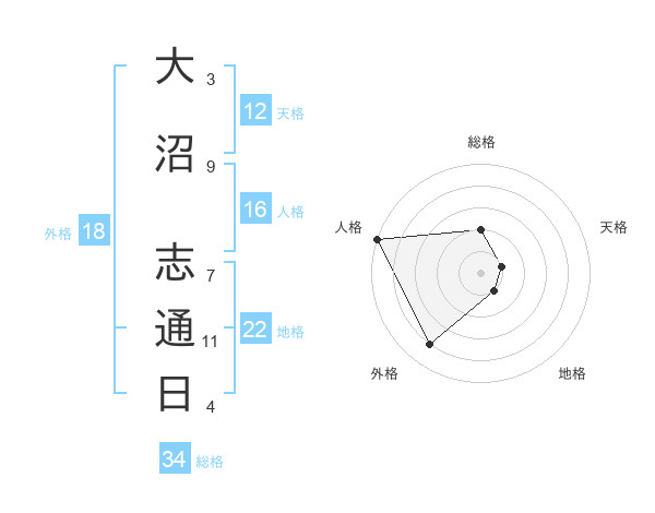 大沼 志通日さんを姓名の画数から五運を鑑定