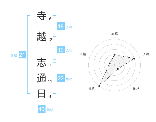 寺越 志通日さんの外格は21画の5点!