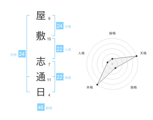 屋敷 志通日さんの外格は24画の5点!