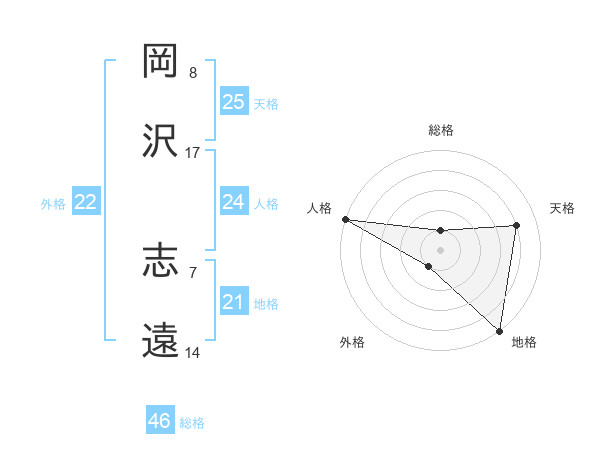 岡沢 志遠さんの人格は24画の5点!