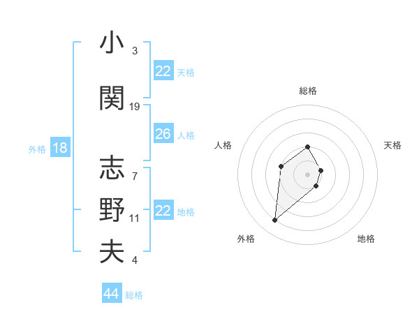 小関 志野夫さんを姓名の画数から五運を鑑定