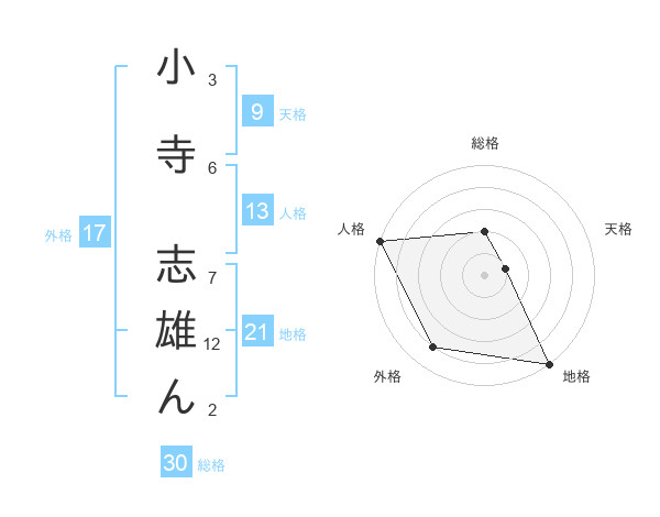 小寺 志雄んさんの総格は30画の2点!