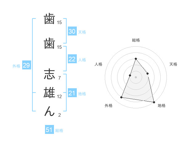 歯歯 志雄んさんの総格は51画の3点!