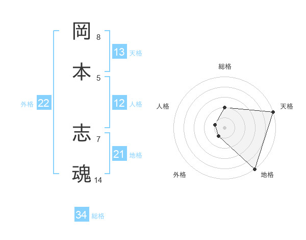 岡本 志魂さんの天格は13画の5点!