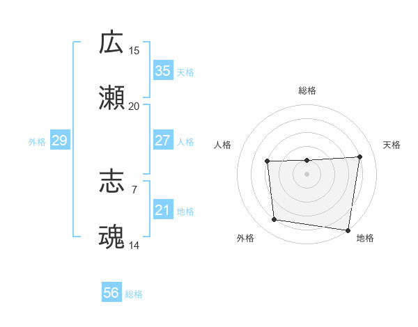 広瀬 志魂さんを姓名の画数から五運を鑑定