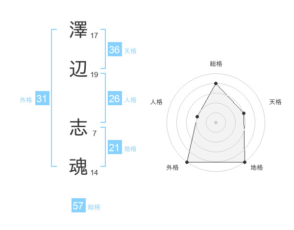 澤辺 志魂さんを姓名の画数から五運を鑑定