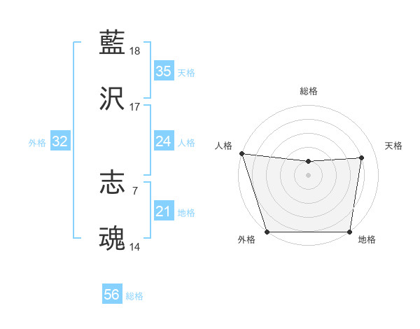 藍沢 志魂さんを姓名の画数から五運を鑑定