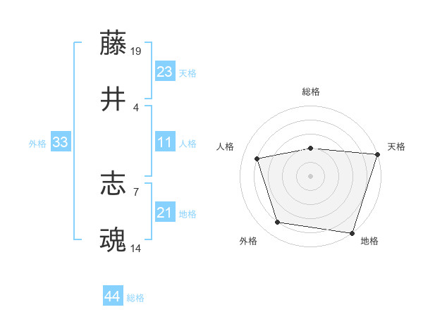 藤井 志魂さんの総格は44画の2点!