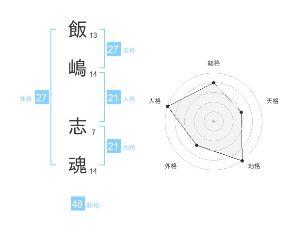 飯嶋 志魂さんの総格は48画の4点!