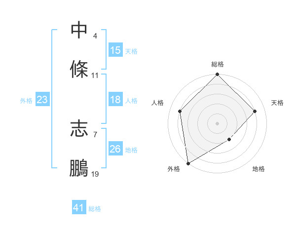 中條 志鵬さんの天格は15画の4点!