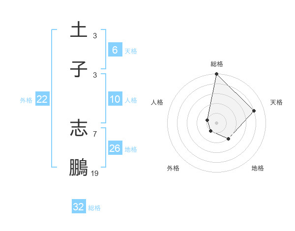 土子 志鵬さんを姓名の画数から五運を鑑定