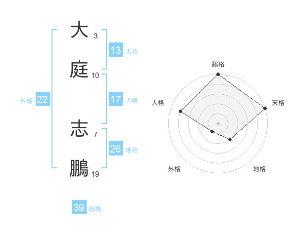 大庭 志鵬さんの天格は13画の5点!