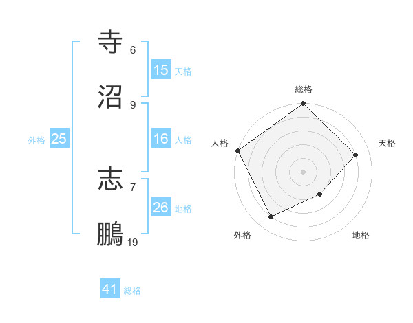 寺沼 志鵬さんを姓名の画数から五運を鑑定