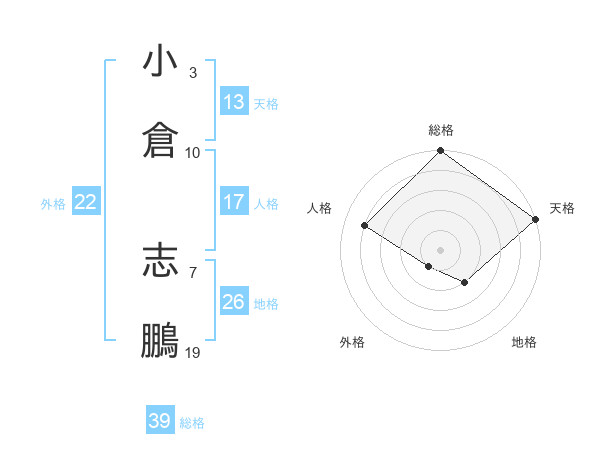 小倉 志鵬さんの総格は39画の5点!