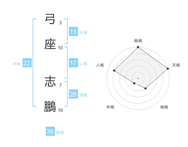 弓座 志鵬さんを姓名の画数から五運を鑑定