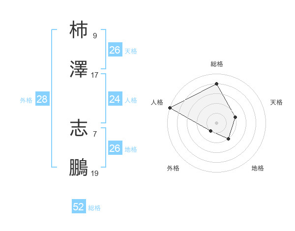 柿澤 志鵬さんの総格は52画の4点!