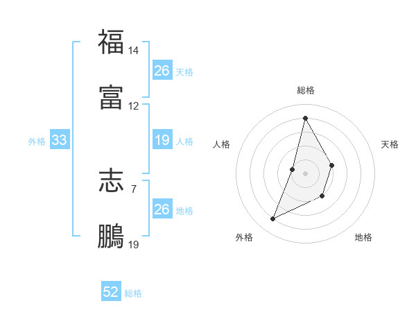 福富 志鵬さんの総格は52画の4点!