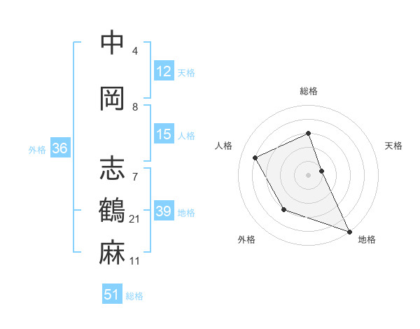 中岡 志鶴麻さんの総格は51画の3点!