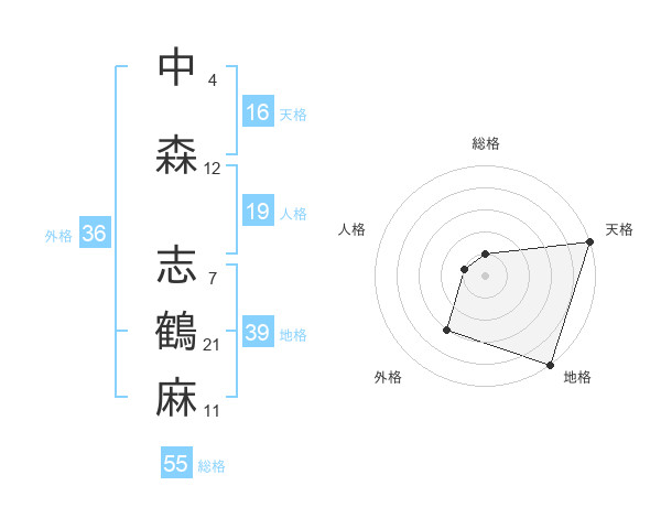 中森 志鶴麻さんの総格は55画の1点!