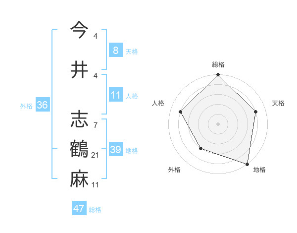 今井 志鶴麻さんを姓名の画数から五運を鑑定