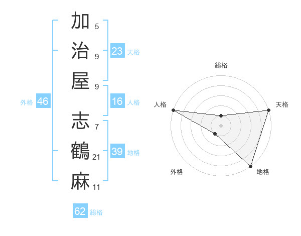 加治屋 志鶴麻さんを姓名の画数から五運を鑑定