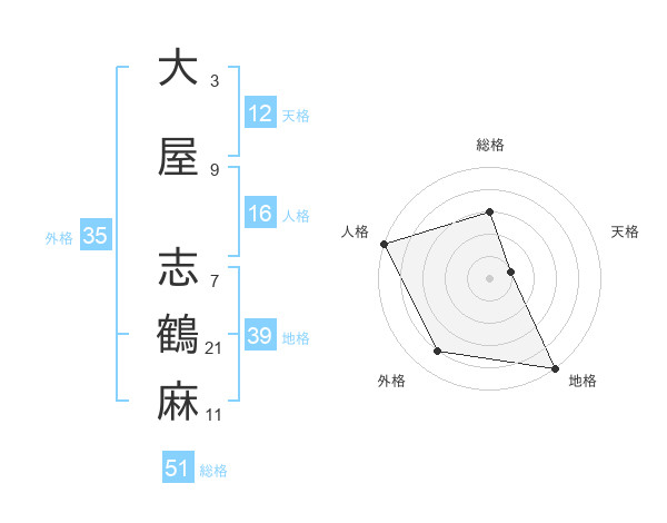 大屋 志鶴麻さんの総格は51画の3点!
