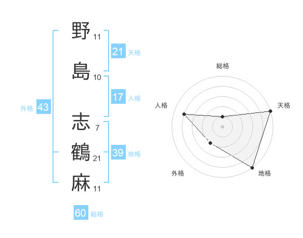 野島 志鶴麻さんを姓名の画数から五運を鑑定
