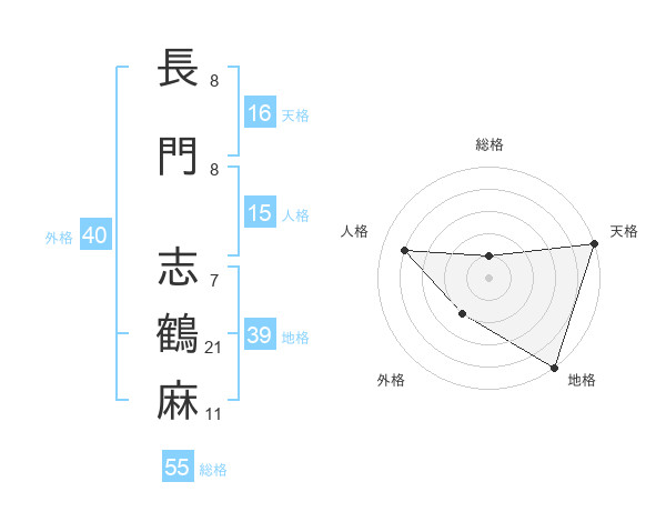 長門 志鶴麻さんの総格は55画の1点!