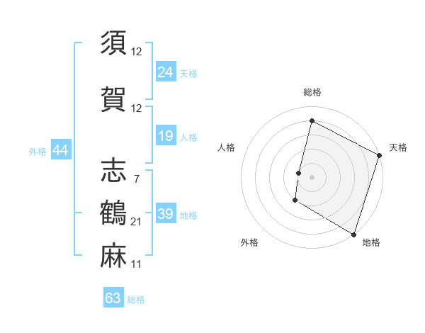 須賀 志鶴麻さんの天格は24画の5点!