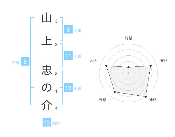 山上 忠の介さんを姓名の画数から五運を鑑定