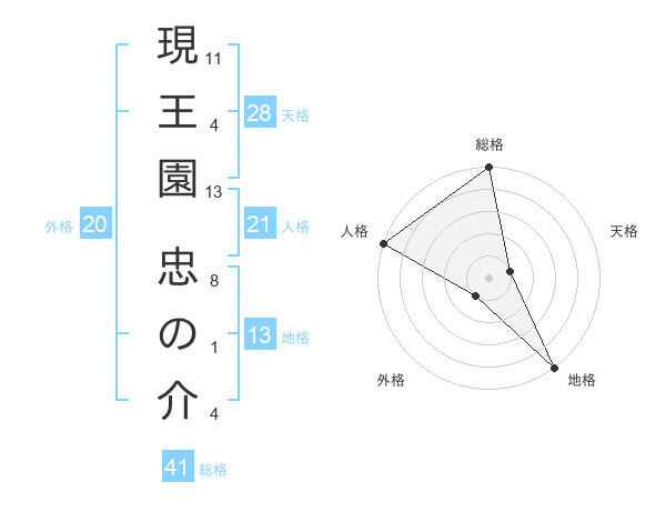 現王園 忠の介さんを姓名の画数から五運を鑑定